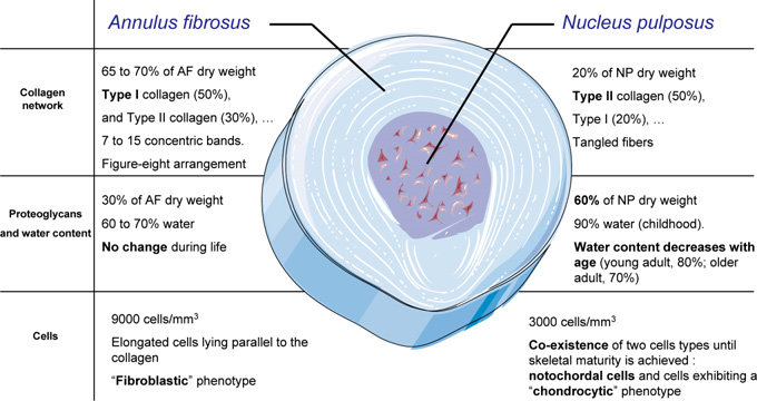 Starpskriemeļu disks sastāv no divām sastāvdaļām: recekļveida kodols (nucleus pulposus) un fibrozais gredzens (annulus fibrosus). Fibrozais gredzens sastāv no blīvām šķiedrām, kas ir sadalītas ārējā un iekšējā slānī. Tie sastāv no savstarpēji savienotām I un II tipa kolagēna šķiedrām. To galvenā funkcija ir saglabātrecekļveida kodolu un uzturēt triecienu absorbējošu funkciju. Starpskriemeļu diska kodols parasti sastāv uz 80% no ūdens. Tas nodrošina triecienu absorbējošu funkciju, absorbējot ķermeņa fiziskās aktivitātes triecienu un noturot divus skriemeļus attālumā vienu no otra.